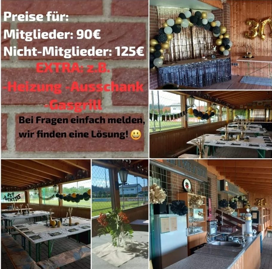 Ob rustikal beim Sportverein, praktisch im Pfarrheim oder ganz woanders – hier findet ihr tolle Locations für Hochzeiten, Jubiläen oder Vereinsfeste auf einen Blick. Wir vermitteln unkompliziert.